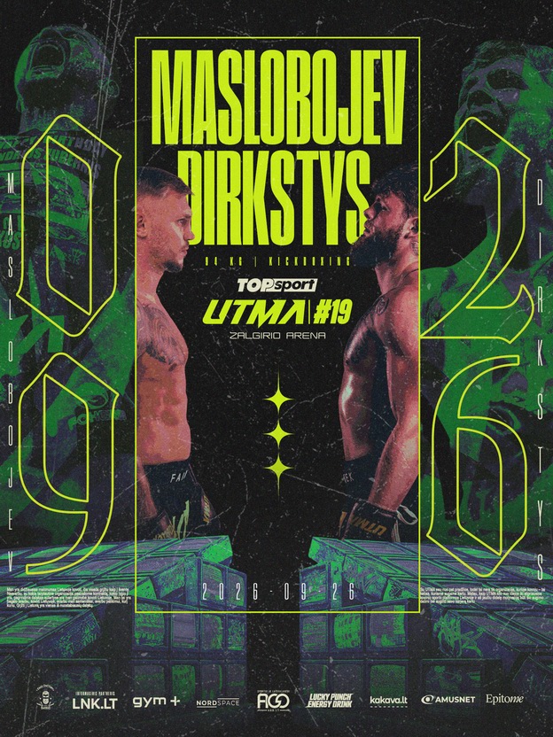 Du didžiausi vardai, dvi skirtingos stovyklos, įtampa ir tai, kas buvo kuriama jau metų metus – Sergejus Maslobojevas UTMA 19 turnyre susikaus su Dominyku Dirksčiu. 94 kg svorio kategorija, kikboksas ir kova, kuri pateiks visus atsakymus.